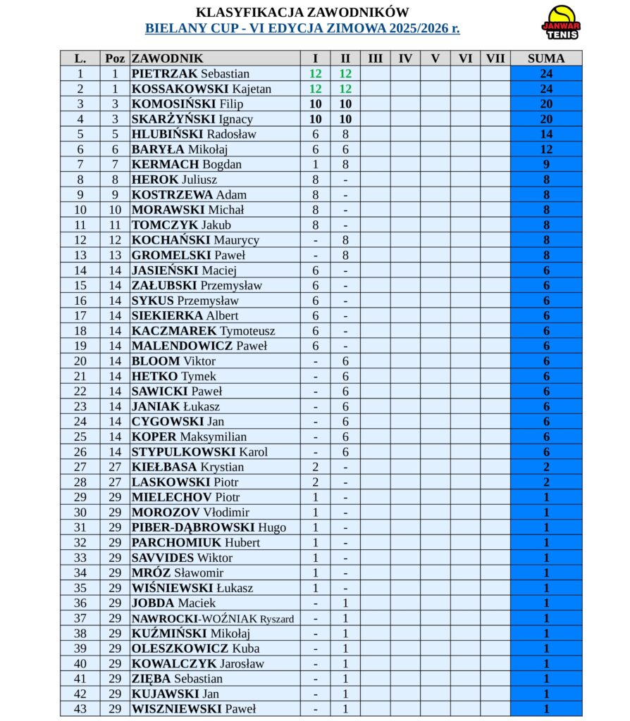 BIELANY CUP – VI EDYCJA ZIMOWA KAT. DEBEL OPEN 2025/2026