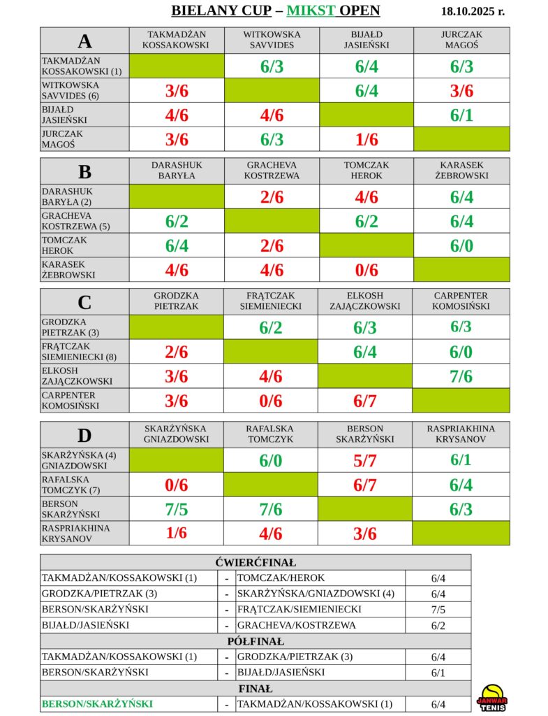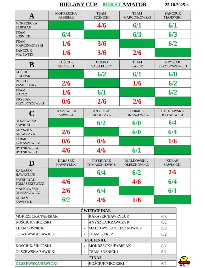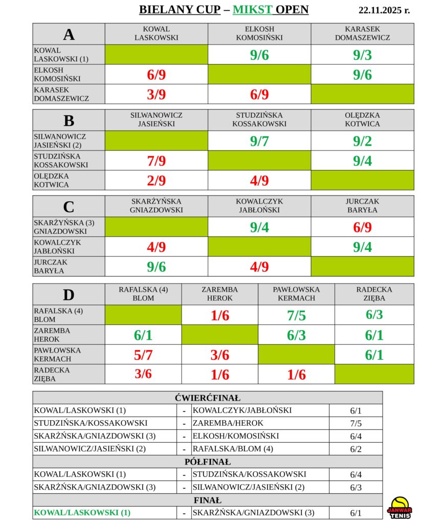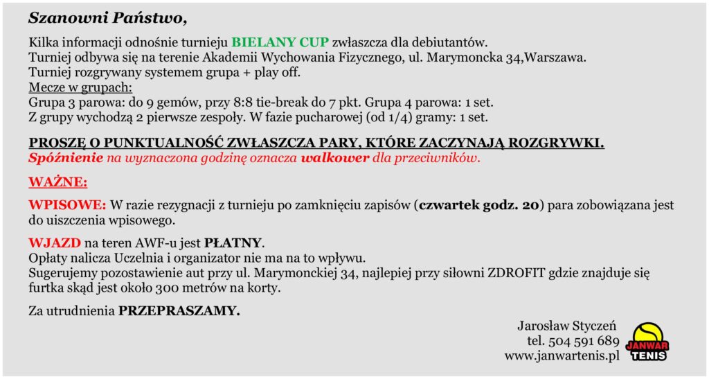 KALENDARZ TURNIEJÓW BIELANY CUP JESIEŃ/ZIMA 2025 r.