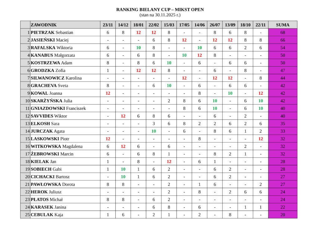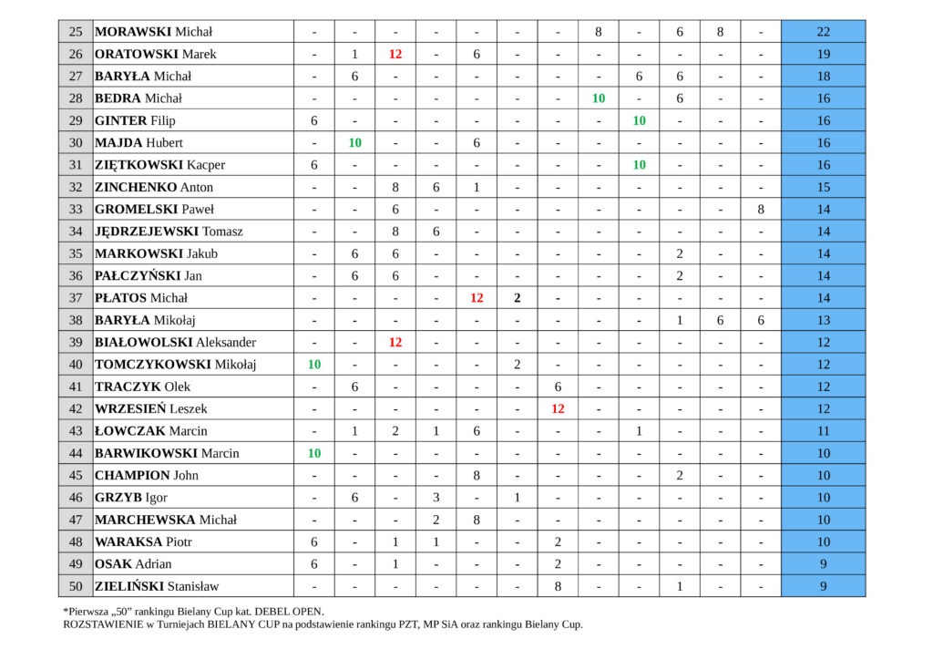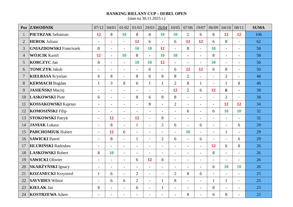 • RANKING BIELANY CUP KAT. DEBEL OPEN / MIKST OPEN