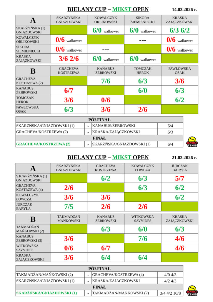 BIELANY CUP – I EDYCJA ZIMOWA MIKST OPEN 2022/2023